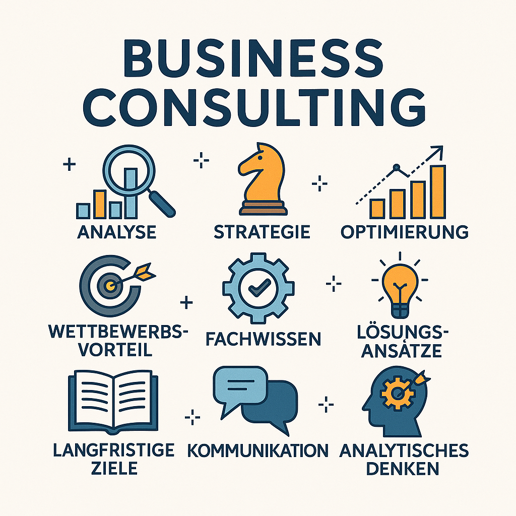 Business Consulting umfasst die professionelle Beratung durch externe Fachkräfte, die Unternehmen bei der Bewältigung komplexer Herausforderungen unterstützen. Im Mittelpunkt steht die Analyse bestehender Strukturen sowie die Entwicklung von Strategien und Optimierungsmaßnahmen. Ziel ist es, Effizienz und Rentabilität zu erhöhen, Innovationspotenziale zu erschließen und die Wettbewerbsfähigkeit langfristig zu sichern. Der besondere Wert externer Berater liegt in ihrem spezialisierten Wissen und dem neutralen Blick von außen. Sie erarbeiten konkrete Konzepte, deren Umsetzung jedoch beim Unternehmen selbst verbleibt.