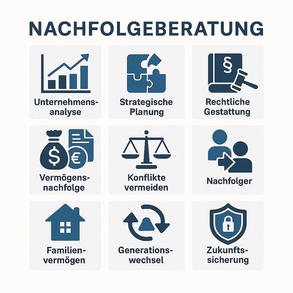 Die Übergabe eines Unternehmens an eine neue Generation oder einen externen Käufer zählt zu den anspruchsvollsten Phasen im Lebenszyklus eines Betriebs. Neben wirtschaftlichen Überlegungen sind rechtliche, steuerliche und persönliche Faktoren einzubeziehen. Eine professionelle Nachfolgeberatung sorgt dafür, dass dieser Prozess rechtzeitig vorbereitet, geordnet umgesetzt und im Sinne aller Beteiligten gestaltet wird. Ziel ist es, die Zukunft des Unternehmens zu sichern, Arbeitsplätze zu erhalten und das Familienvermögen nachhaltig zu schützen.