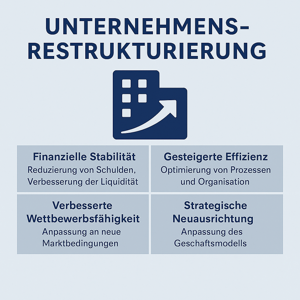 Unternehmensrestrukturierung – Bedeutung, Anlässe und Maßnahmen Eine Unternehmensrestrukturierung ist ein tiefgreifender Prozess, bei dem bestehende Strukturen, Abläufe oder die finanzielle Ausrichtung eines