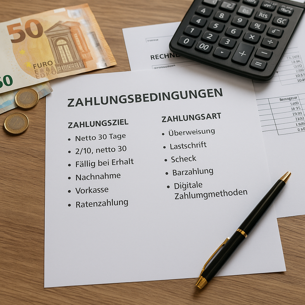 Zahlungsbedingungen sind ein wesentlicher Bestandteil geschäftlicher Vereinbarungen und regeln, wann, wie und unter welchen Umständen eine Rechnung zu begleichen ist. Sie schaffen Transparenz über die finanziellen Verpflichtungen zwischen Vertragspartnern und sind fester Bestandteil von Angeboten, Verträgen und AGB. Ihr Ziel besteht darin, Unklarheiten zu vermeiden, die Finanzplanung zu erleichtern und einen geordneten Geldfluss sicherzustellen.